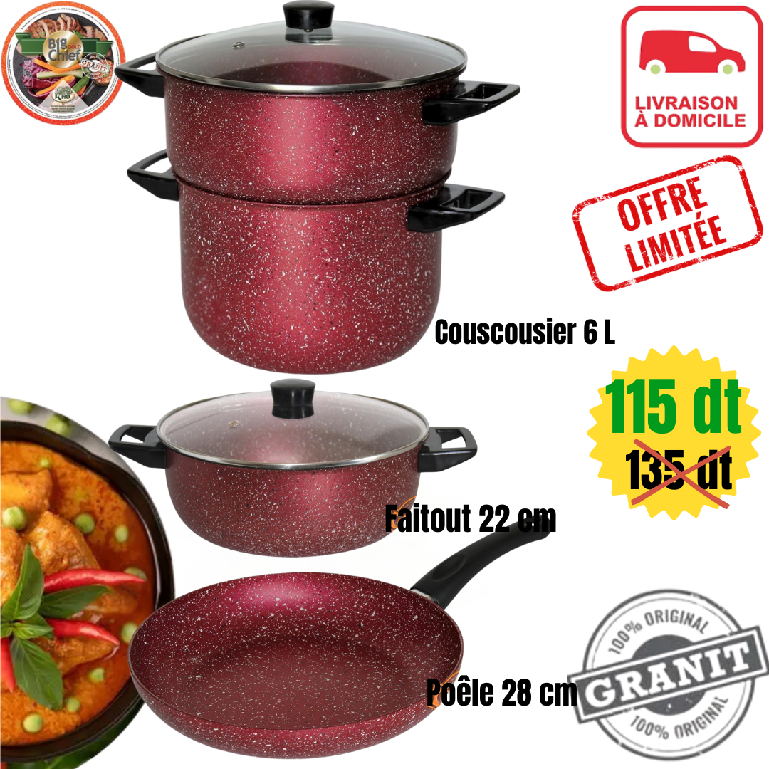 Batterie De 6 Pièces By COOK'ART Granite ✅ en Promo❗ 🎁😍 3 Couleurs : Noir/Bronze/Rouge
