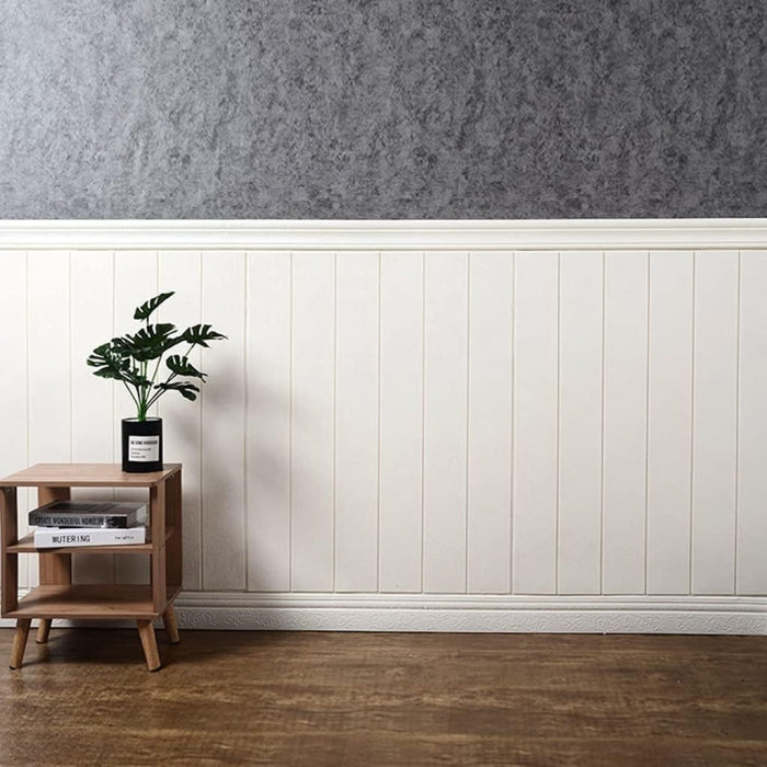 Pack de 10 Panneaux Muraux 3D Adhésifs Anti-Humidité – 77×70 cm – Blanc Motif Rainuré