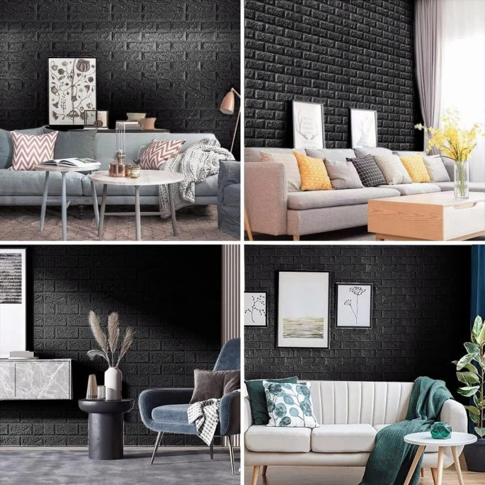 Pack de 10 Panneaux Muraux 3D Effet Brique Noir